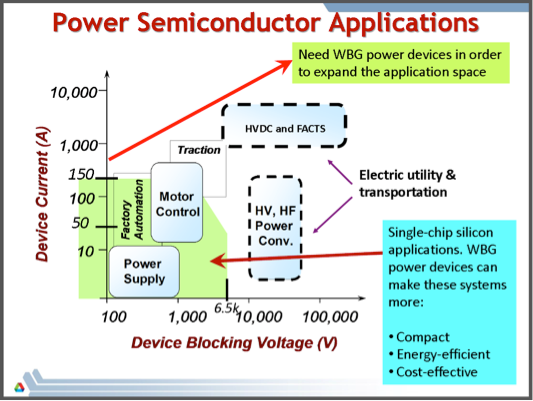 A slide from Dr. Krishna Shenai’s professional education seminar on wide bandgap semiconductors for power applications at APEC 2014.