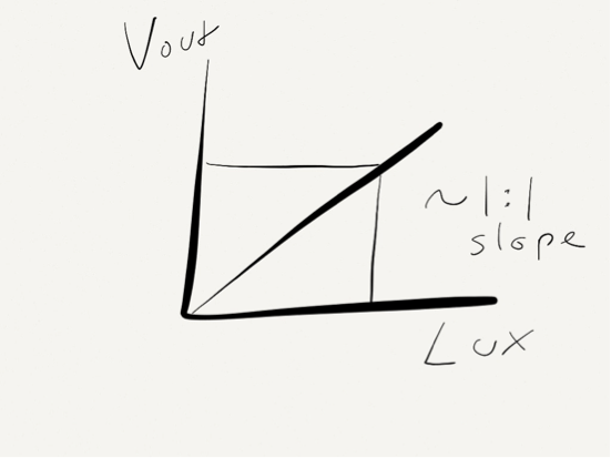 In that project we were solely worried about the presence or absence of light, not accurately measuring the intensity of the light. Thus we got away with a pretty simple voltage divider circuit to measure the light. In other applications you might be concerned with accurately measuring the light intensity with greater resolution. If your project needs that accuracy, there are many circuits that can give you that resolution. One particular implementation utilizing an operational amplifier (op-amp) is this circuit here: