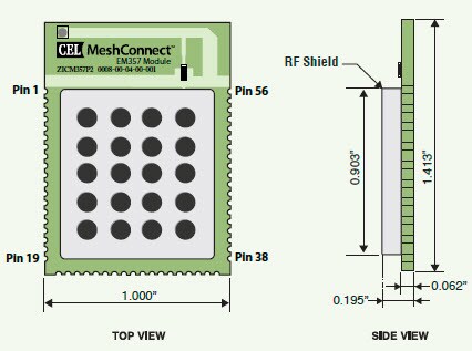 CEL MeshConnect™ ZICM357P2-1 EM357 transceiver modules combine a high performance RF solution with the premier ZigBee stack on the market. The MeshConnect EM357 module also integrates 1MB on board Flash memory for over-the-air program updates without the need for additional in-system memory, making this CEL device ideal for smart energy applications. The integrated power amplifier maximizes range and performance. CEL MeshConnect EM57 transceiver modules are based on the Ember EM357 ZigBee compliant system-on-chip IC. The module is a single-chip wireless solution for ZigBee applications and includes an RF transceiver with baseband modem, a hardwired MAC, and an embedded 32-bit ARM® Cortex™-M3 microcontroller with internal RAM (12kB) and Flash (192kB) memory. The CEL ZICM357P2-1 EM357 adds a power amplifier to increase range up to 2.5 miles, provide more reliable transmission, and reduce the number of nodes in your network.