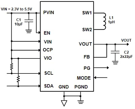 - 2.3V to 5.5V VIN input voltage